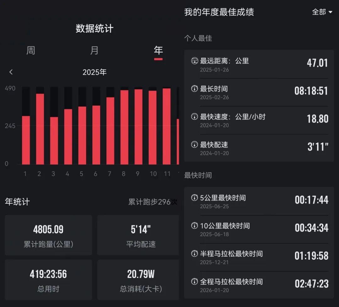 曾雪梅在2025年的跑量接近5000公里